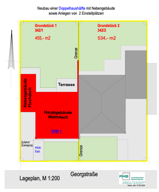 Neubau eines Doppelhauses mit Nebengebäuden in Altharen.